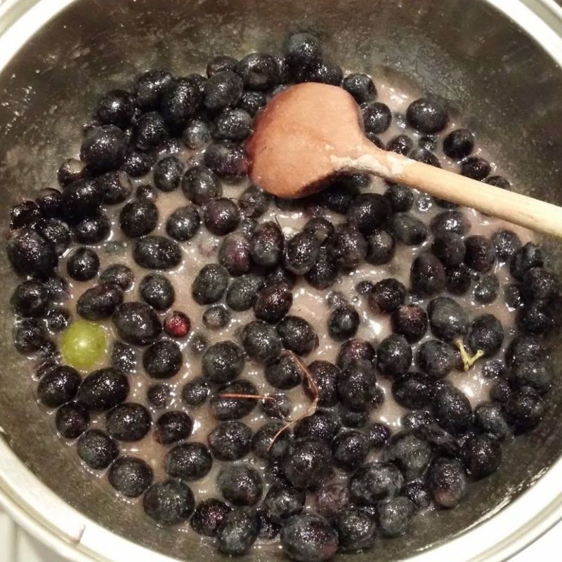 Weintrauben mit Zucker und Fruchtgel mischen und bei mittlerer Hitze zum Kochen bringen. Damit man ein feines Gelee erhält, alles gut passieren (ich verwende dazu die flotte Lotte!)